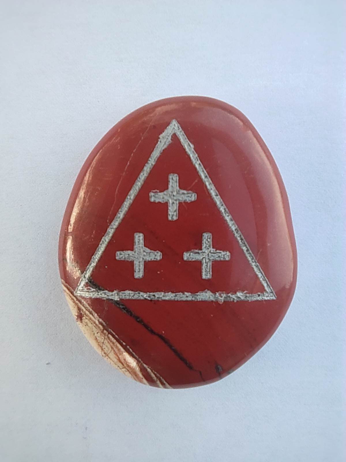 O Eternel, ce symbole représente notre union avec Toi. Le triangle, rouge feu, est ta Sainte Trinité: Père, Fils et Saint Esprit; et il s'entrelace avec notre Humanité, créée à ton image dans les trois éléments: Corps, Âme et Esprit.